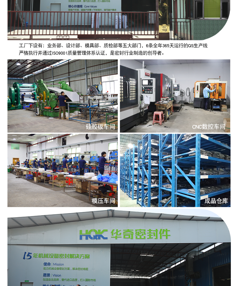 東莞市華奇密封件有限公司成立于2006年,位于廣東省東莞市石碣鎮(zhèn),占地面積10000平方米,公司員工150余人,是廣東省集橡膠硅膠硫化、橡膠擠出、硅膠擠出一體化生產(chǎn)的新型企業(yè)。 本公司主營產(chǎn)品有:大型盾構(gòu)機(jī)密封圈,充氣密封圈,烤箱密封圈,密封條,真空吸盤,密封圈O型圈,密封圈護(hù)線圈,金屬包膠等非標(biāo)定制硅橡膠制品。 東莞市華奇密封件有限公司材料庫擁有超過數(shù)百種獨(dú)特的配方,并擁有在嚴(yán)苛環(huán)境下,如極端溫度、介質(zhì)侵蝕、超高壓力時(shí)也具有優(yōu)良的密封材料。高性能橡膠、硅膠原材料、全自動(dòng)生產(chǎn)設(shè)備及先進(jìn)的檢驗(yàn)設(shè)備,為制造高質(zhì)量的橡膠零件提供了強(qiáng)有力的保障。公司采用先進(jìn)的管理理念,引進(jìn)精良的工藝裝備和高素質(zhì)的員工隊(duì)伍,在多年的工作過程中,把嚴(yán)格的品質(zhì)落實(shí)在生產(chǎn)流程的每一個(gè)細(xì)節(jié)中,嚴(yán)格執(zhí)行行業(yè)標(biāo)準(zhǔn),規(guī)范操作,用科學(xué)嚴(yán)謹(jǐn)?shù)墓ぷ鲬B(tài)度確保華奇每一件產(chǎn)品精準(zhǔn)可靠。產(chǎn)品暢銷全國近三十多個(gè)省、市自治區(qū)及遠(yuǎn)銷國外。竭誠與國內(nèi)外商家雙贏合作,共同發(fā)展,共創(chuàng)輝煌!